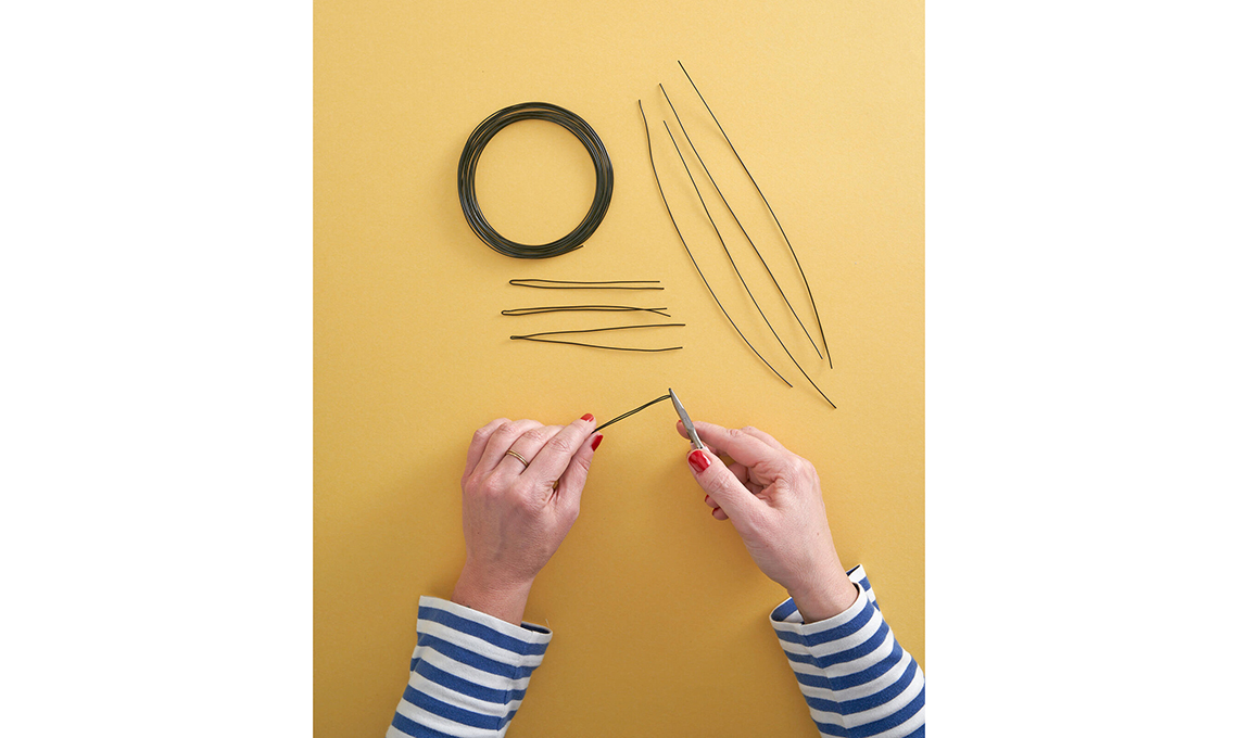 Taglia un pezzo di filo di cm 80 circa, avvolgilo sullo stelo per creare il gambo e stringi con la pinza a punta piatta.
