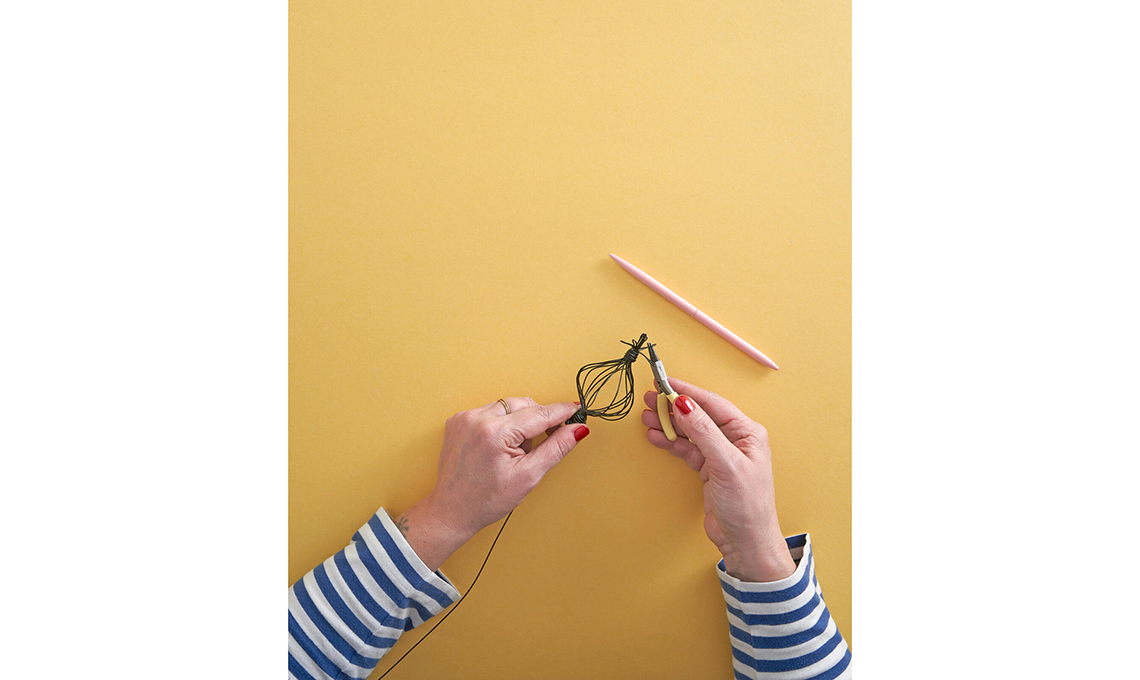 Con le mani apri i singoli fili, creando la bombatura del frutto. Avvolgili nella parte inferiore con un po’ di filo ben stretto.