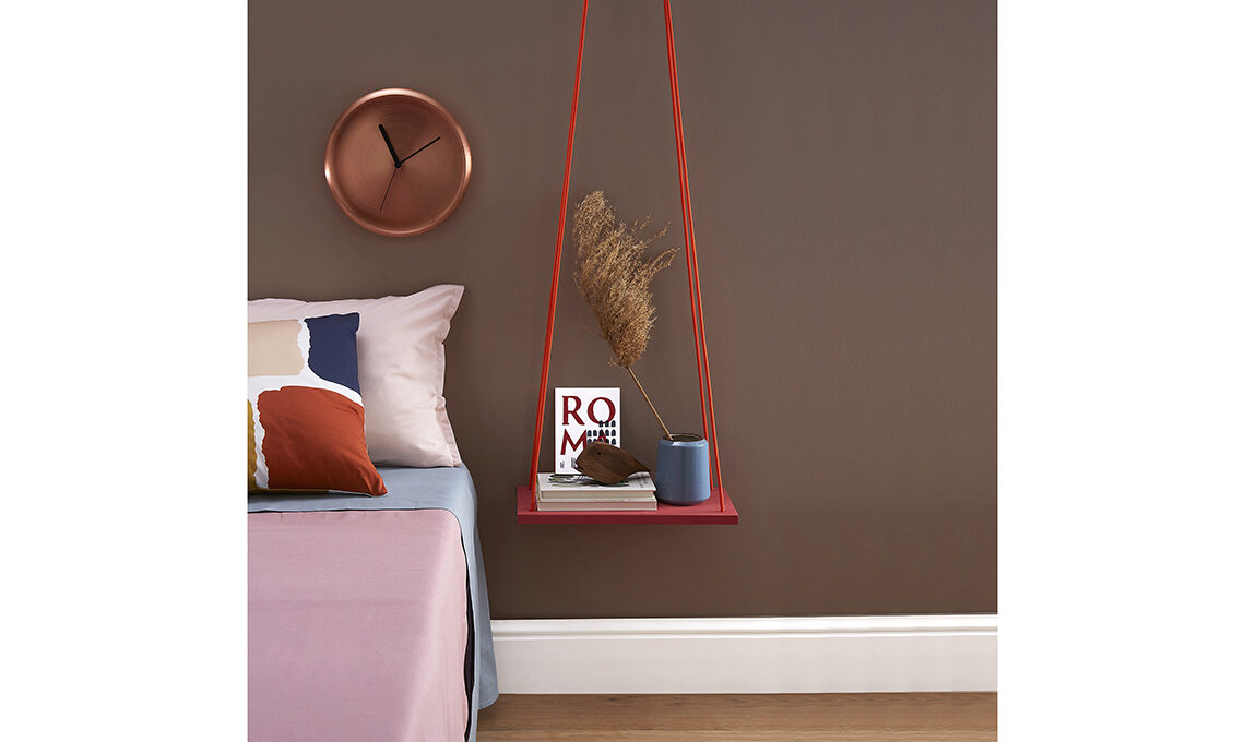 Per tornare un po’ bambini, i classici comodini lasciano il posto a piccole altalene sospese realizzate con una mensola e fissate al soffitto con corde colorate e ganci.