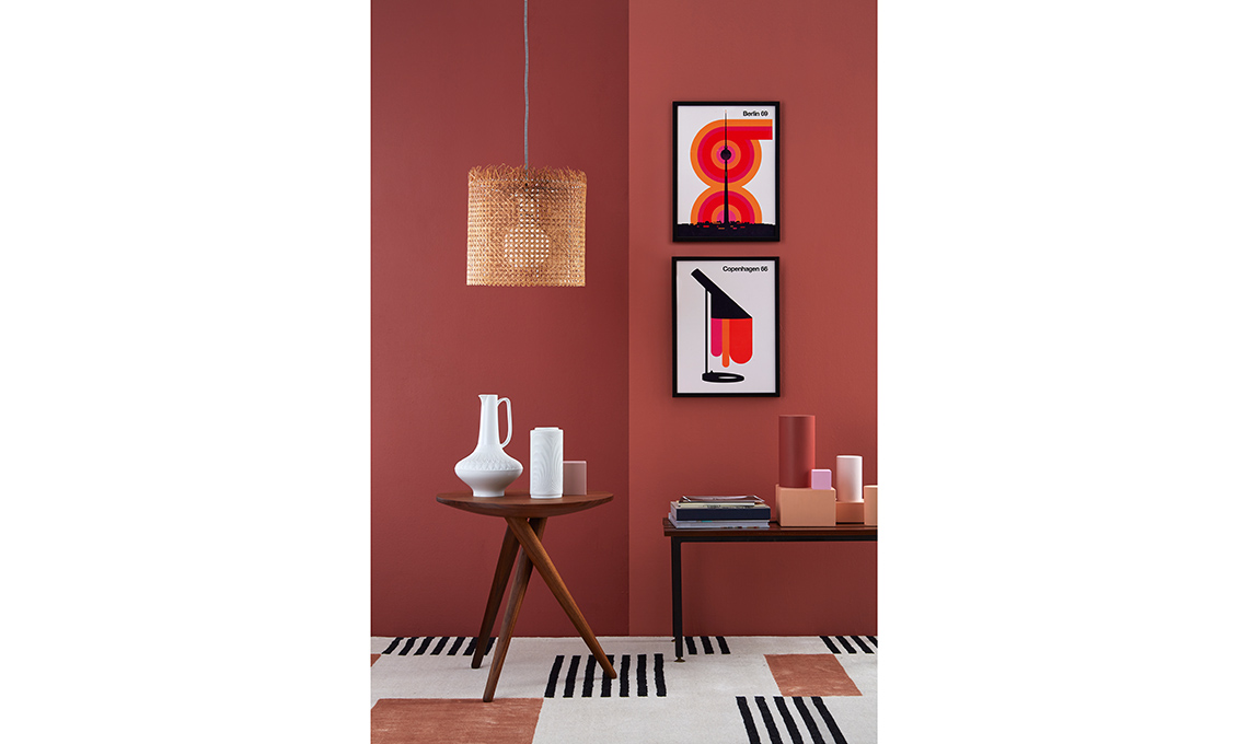 Panchetta [Mauro Bolognesi €120]. stampe incorniciate [Desenio]. Le pareti sono dipinte con le vernici Tile Tan e Mineral Red [Wilson & Morris].