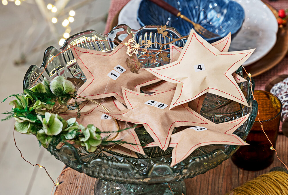 - Incollare con la colla vinilica o colla a caldo le stelline sul fondo della scatoletta