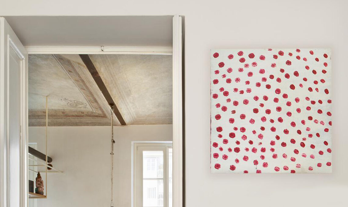 - Realizza sulla tela gli altri pois e lascia asciugare. Se vuoi realizzare pois più regolari usa i tamponi o il pennello da stencil.