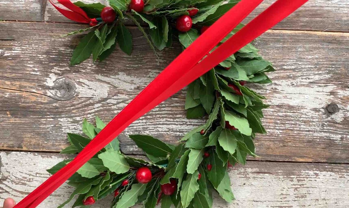 - Fissa i rametti di alloro alla base con del filo sottile di ferro.