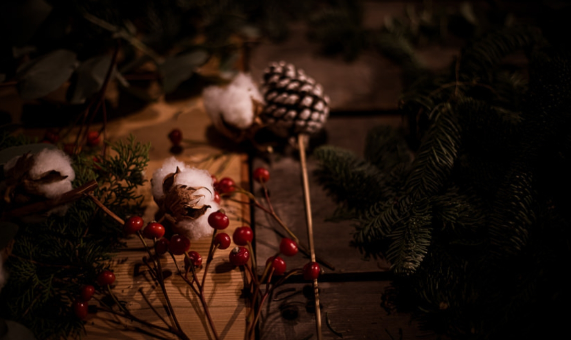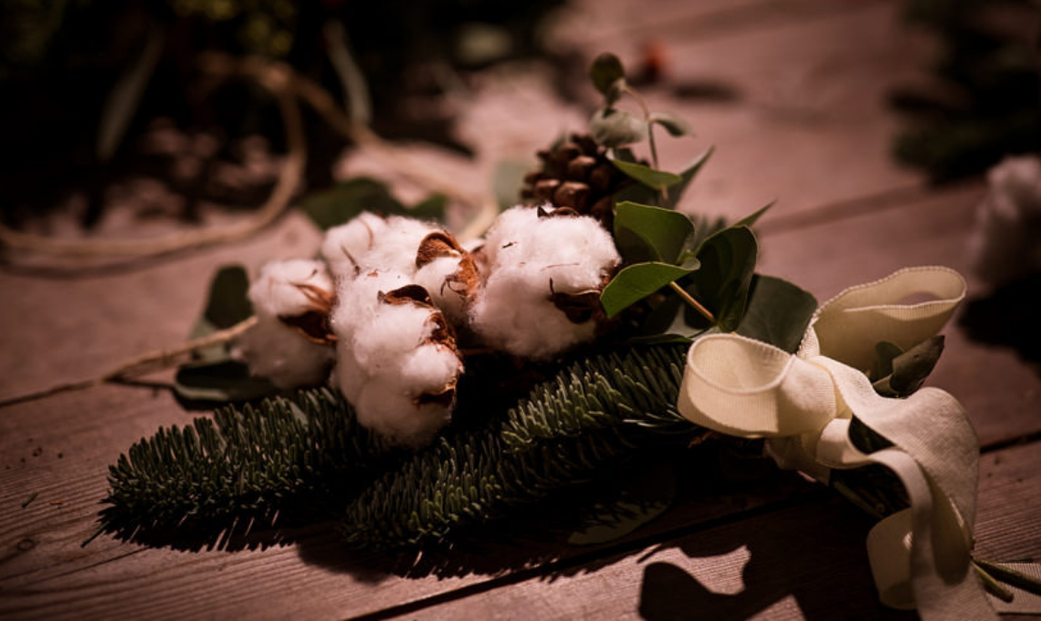- Una volta tagliato tutto il materiale fai dei piccoli mazzolini misti. (Per costruire il mazzetto usa come base il pino,la thuja e l’eucalipto e metti in primo piano, le bacche, la pigna o il fiore di cotone). Chiudete il mazzolino girandogli attorno il filo di ferro. Stringi forte altrimenti una volta secco il materiale perde di volume ed esce dal mazzolino. Realizza circa 10/12 mazzolini.
