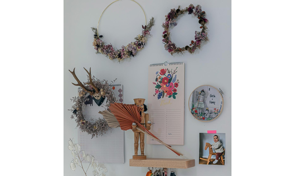 - Mantieni sempre lo stesso verso quando inserisci i fiori e rivesti 3/4 circa della ghirlanda.