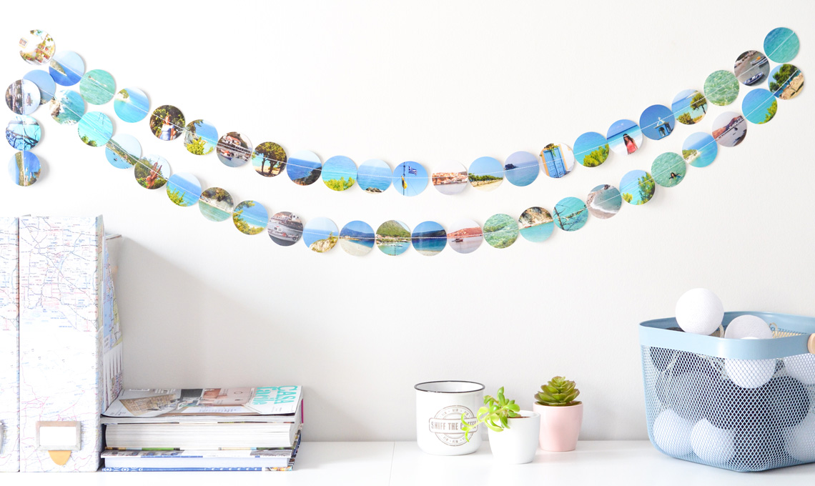 Ecco un progetto semplice con il quale potrai tenere sempre davanti agli occhi il blu del mare di quell’isoletta visitata lo scorso anno o i ricordi dell’ultimo viaggio nella tua città del cuore: stampale, e ricavane un’originale ghirlanda!
