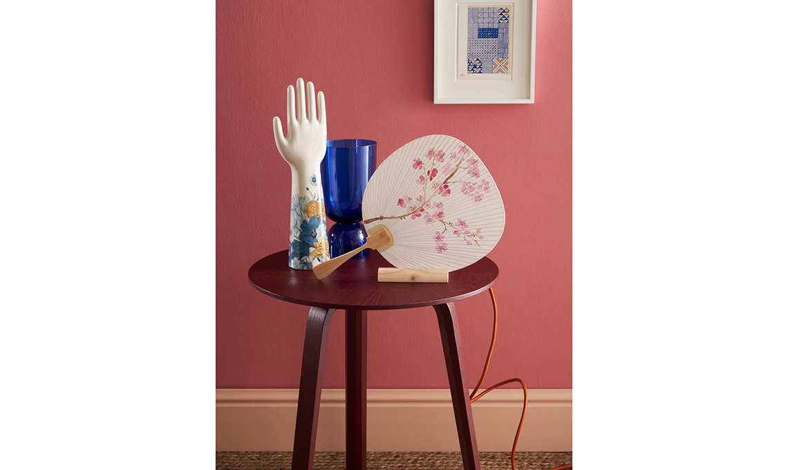Sul tavolino Bella 65, vaso Bottom Up [Hay, su designrepublic.com], mano anatomica [Vito Nesta, da Nap Atelier]. Stampa