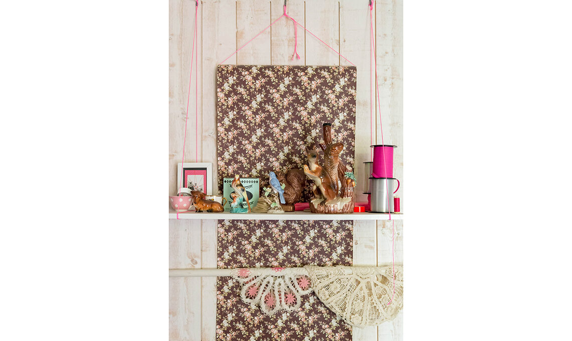 - Con le corde a cavallo delle estremità, fissa la mensola davanti al pannello.