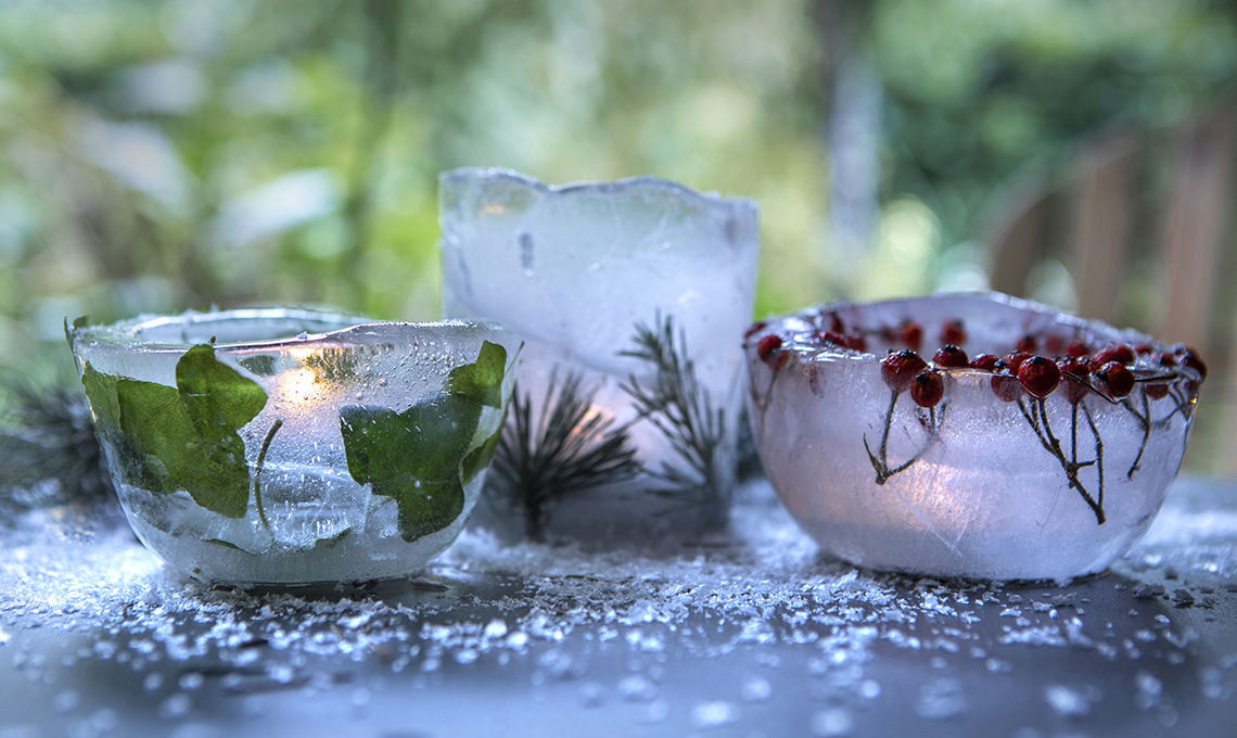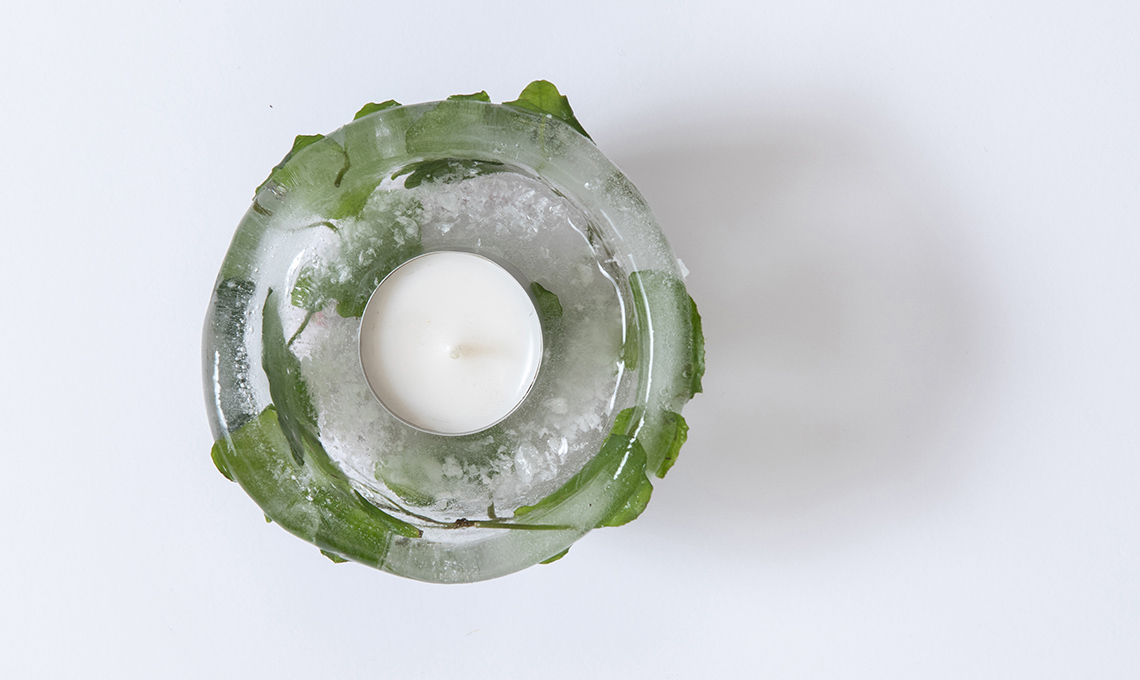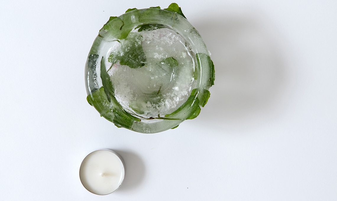 - Aggiungi la candela e tienila al gelo all’aperto. Invece se vuoi usarla come centrotavola in casa, mettila su un vassoio dai bordi alti.