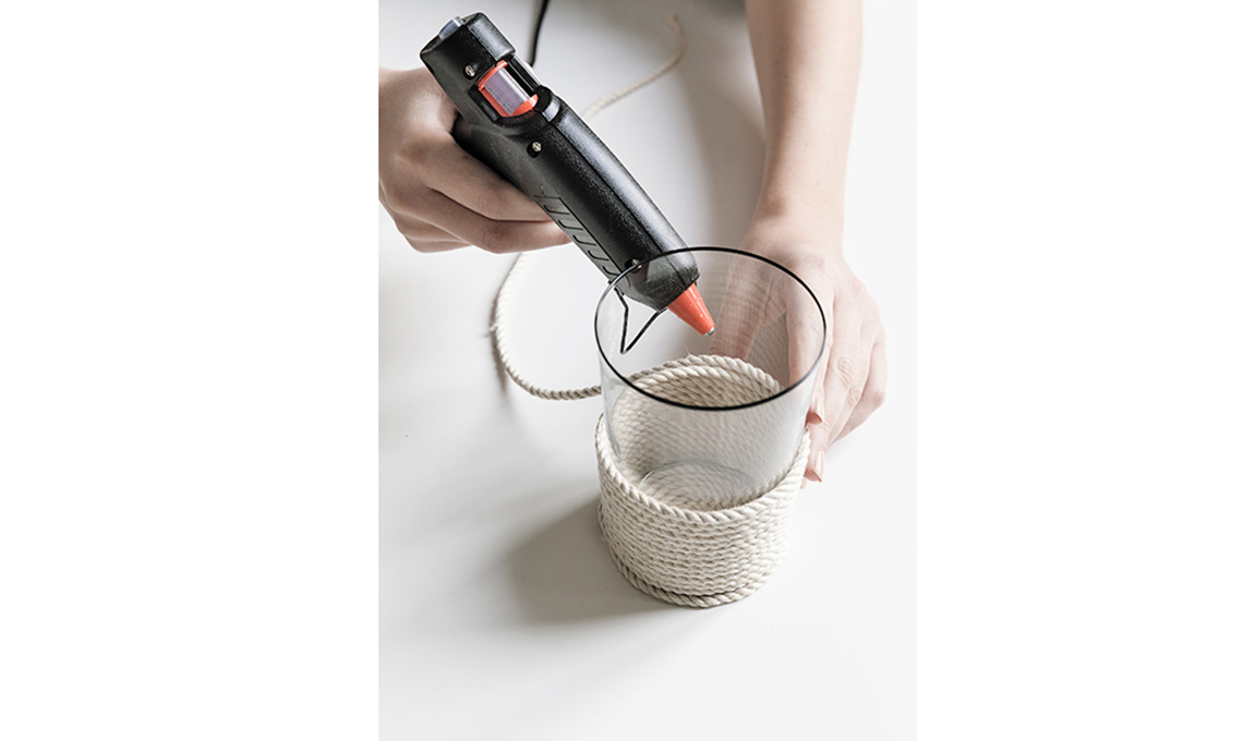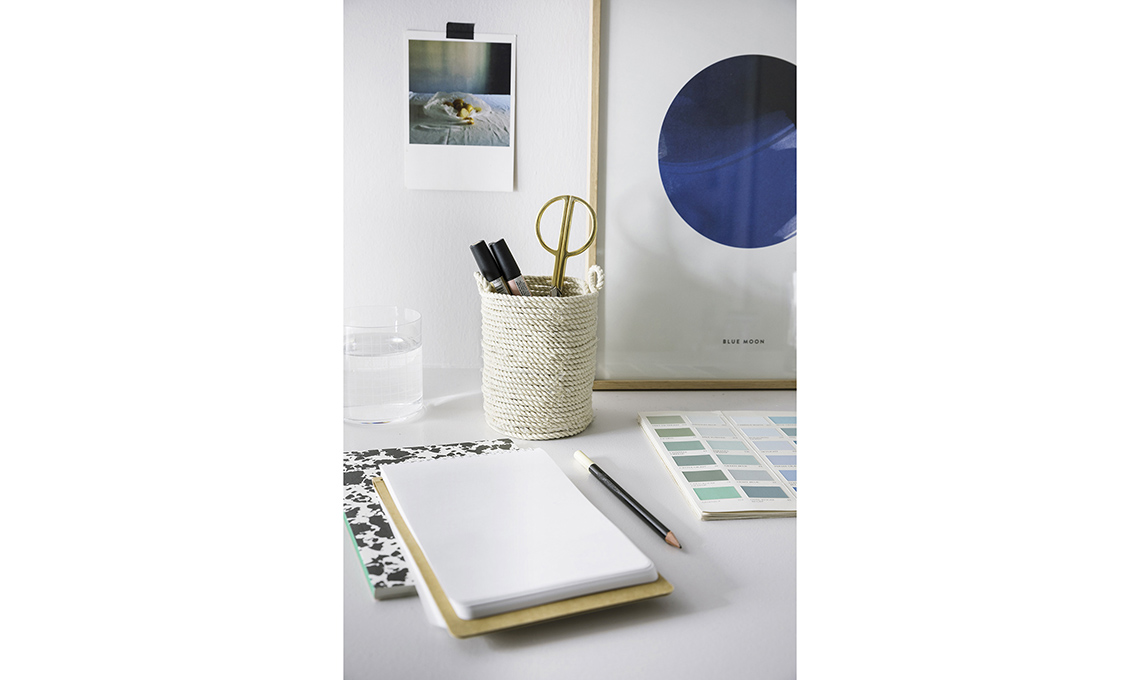 Trasforma semplici oggetti di uso quotidiano in elementi décor che aggiungono un tocco di stile. La corda, grazie al bicchiere di vetro, diventa un originale porta penne!