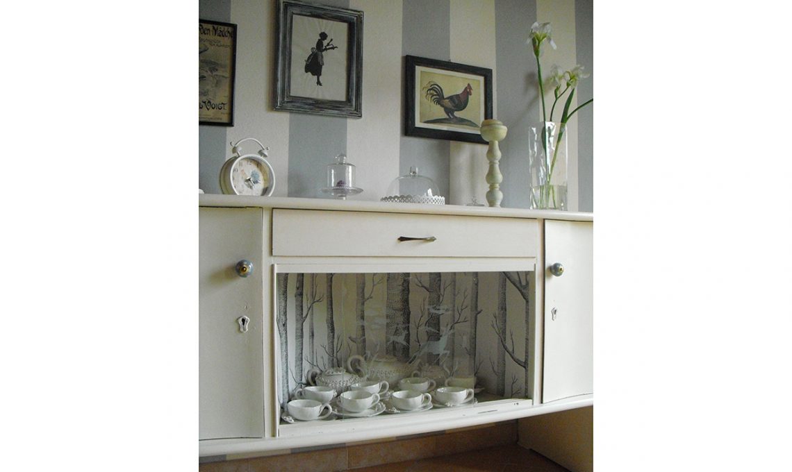 Vernice per legno, cartavetrata, carta da parati: ecco gli ingredienti per restaurare e ridare nuova vita a un vecchio mobile. La nostra lettrice Graziella lo ha fatto e ci racconta passo passo il suo progetto fai-da-te. «Mi piacciono i mobili e gli oggetti con un passato, specie quando poi posso metterci mano e trasformarli a mio modo...» racconta Graziella. «Questo mobile era di mia sorella, eredità della mamma di suo marito, e sono stata felice quando me lo ha regalato. Era una vecchia credenza con un piano superiore che ho tolto per alleggerire il tutto; era ben conservato, non sono stati necessari grandi interventi: una leggera scartavetrata, e due mani di vernice all'acqua per legno. L'interno della vetrina era rivestito di piccoli specchi, ma molti erano mancanti, così ho deciso di rivestirlo con una carta da parati che mi è stata regalata da un amico conosciuto nella community di CasaFacile! I cervi sul vetro della credenza, che tanto mi piacciono, ora sembrano correre in un bosco incantato... Ho infine sostituito i vecchi pomelli con un modello piu' simpatico e ho dipinto il muro a strisce bianche e grigie per far risaltare il mobile sulla parete del soggiorno».