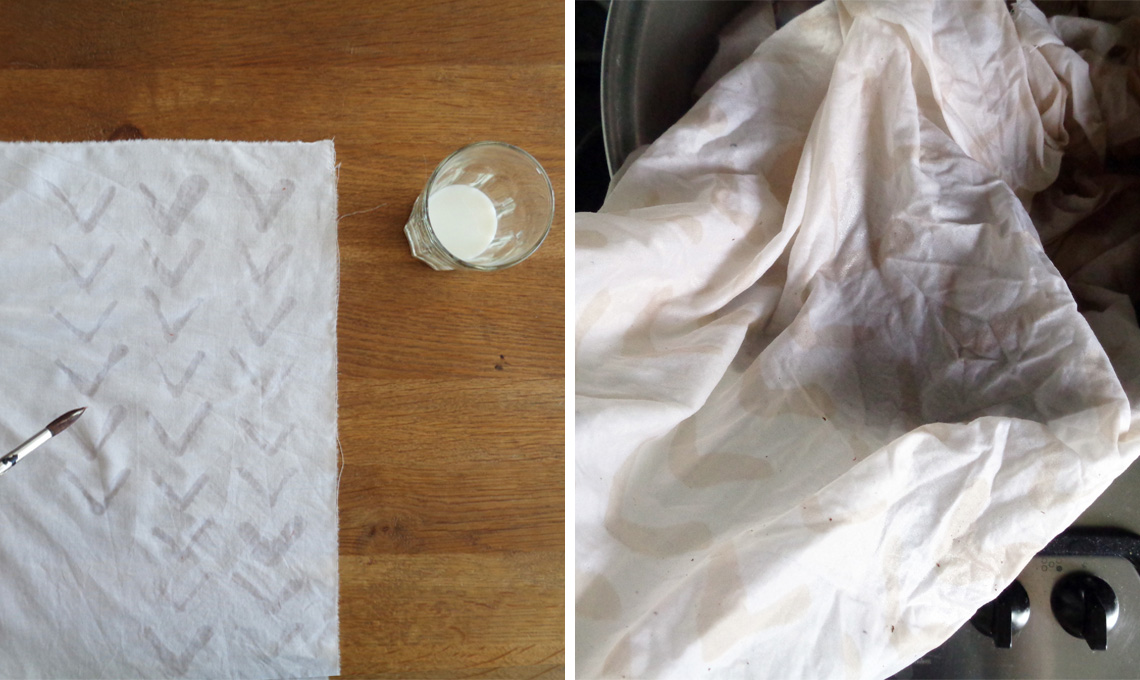 Se vuoi controllare il disegno, alzalo in controluce mentre è ancora bagnato: una volta asciutto infatti sarà invisibile. - Lascia asciugare e metti a riposo per qualche giorno, in modo che le proteine del latte si aggrappino bene alle fibre del tessuto.