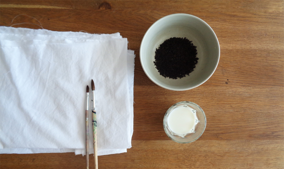 - Inumidisci leggermente i tessuti decorati e immergili, accartocciati, nel tè.