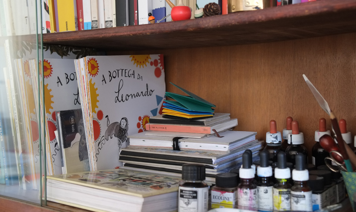 Ilaria sta lavorando nella sua casa studio, al quarto piano di un condominio di ringhiera nel cuore di Milano. La porta d'ingresso e la finestra della camera da letto sono aperte e l'aria che attraversa l'appartamento lascia svolazzare i fogli di carta coloratissimi posati qua e là sugli arredi.