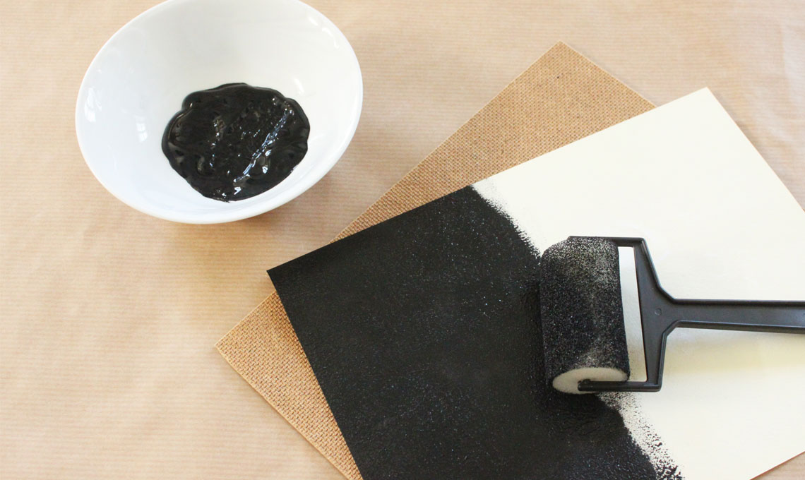- Con la pittura che simula l'effetto lavagna puoi pitturare direttamente il retro della cornice stessa oppure come ho preferito io in questo caso, il cartoncino esistente. Stendi quindi due mani di pittura effetto lavagna per una copertura totale.