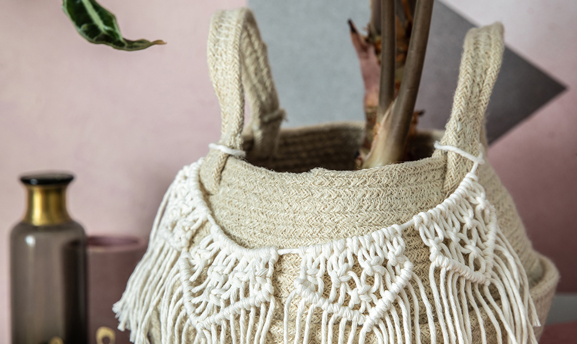 Il nome macramè deriva dall’unione delle parole arabe ’frangia’ e ’nodo’ e indicava gli ornamenti creati dai marinai durante le lunghe traversate in mare, intrecciando e annodando a mano una serie di fili verticali. Scopri come realizzare il cesto gipsy!