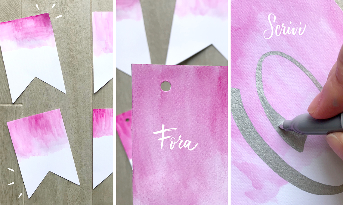 Oggi ti proponiamo un festone a bandierine decorato con gli acquerelli da appendere nella cameretta, oppure al tavolo dei dolci per la festa di compleanno o nell’ingresso di casa per festeggiare un’occasione speciale!