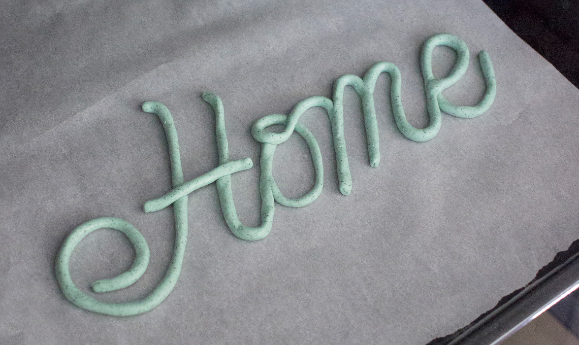 - Creata interamente la scritta, posizionarla sopra una teglia ricoperta con la carta forno e cuocere secondo le indicazioni sulla confezione della pasta polimerica utilizzata;