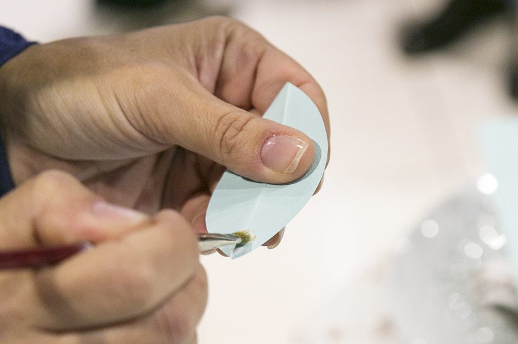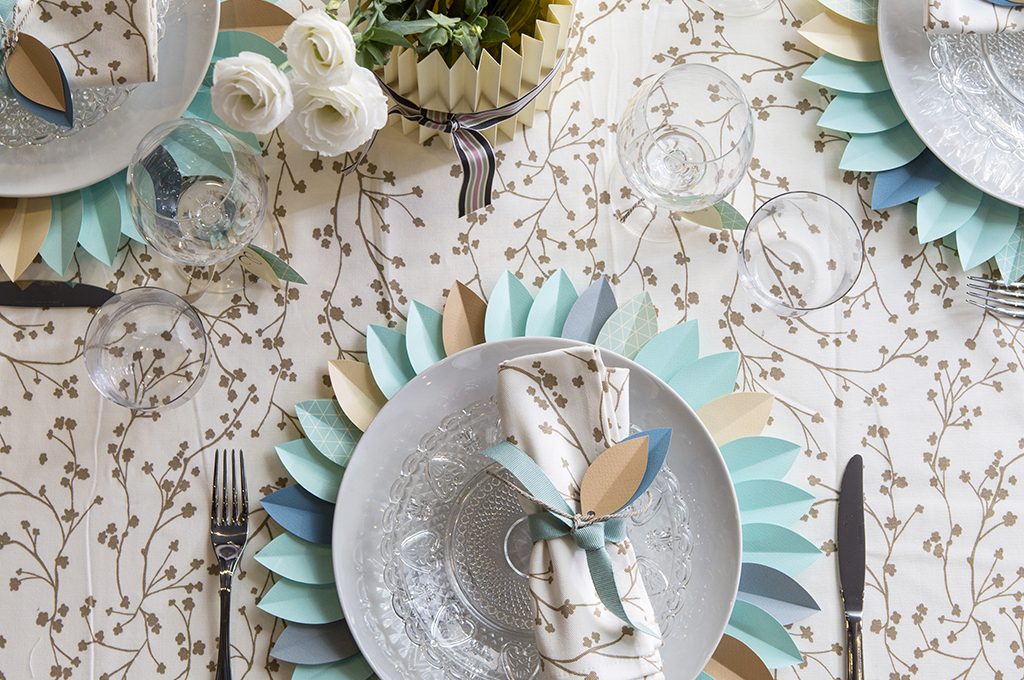 Una tavola personalizzata con dettagli realizzati a mano in carta.