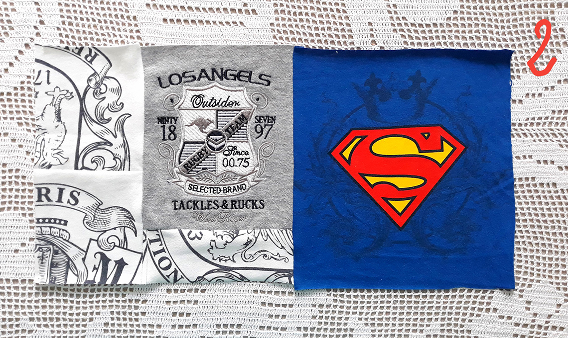 - Assembla tra loro i 6 quadrati da cm 20x20: unisci il primo con il secondo e successivamente il terzo ottenendo un blocco di tre quadrati. Con la stessa procedura, realizzate il secondo blocco da tre quadrati.