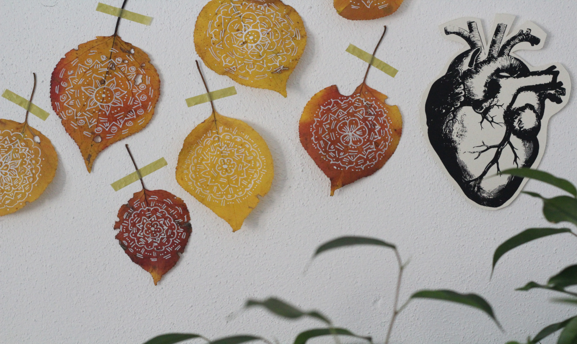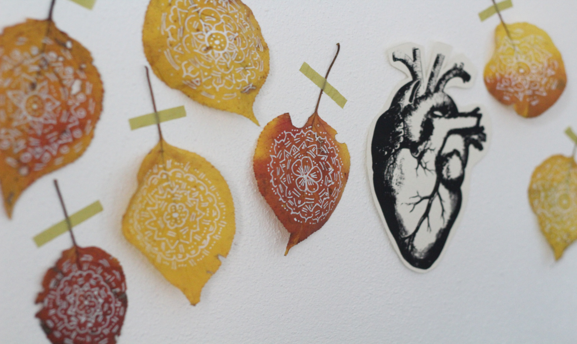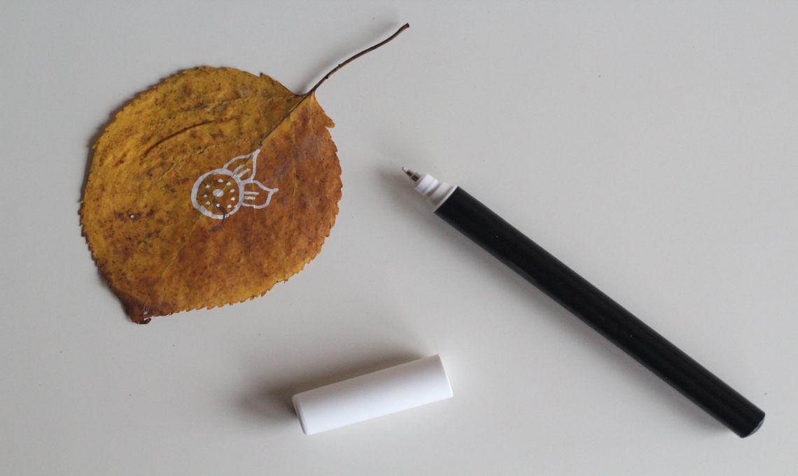 - Con il pennarello bianco, disegna dei doodle sulle foglie, senza pensare troppo, lascia libera la mente e la mano di disegnare. Prediligi forme semplici, geometriche e ripetitive, senza badare troppo alla precisione. Il risultato sarà naturale e in stile boho chic che si abbina benissimo all’atmosfera poetica dell’autunno. Lascia che il disegno sia spontaneo, vedrai come sarà anche terapeutico! Mentre disegni, fai attenzione a non premere troppo con la punta del pennarello o rischierai di rompere la trama della foglia.