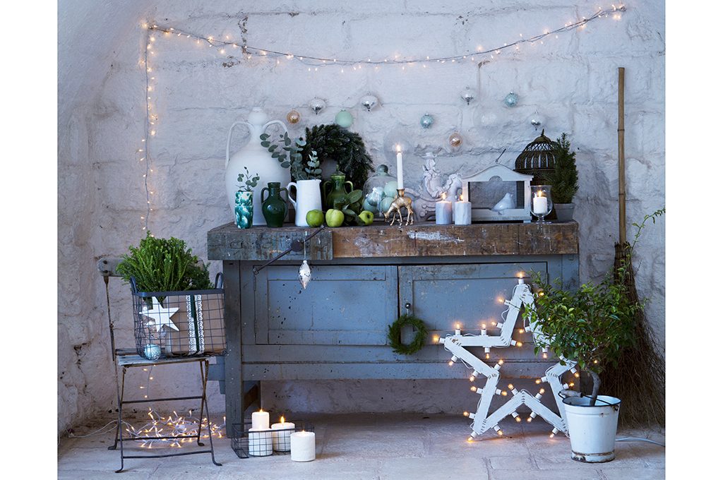 Piante, foglie, rami verdi sono l’ingrediente perfetto per addobbare la casa a Natale. Mixali con lucine e decori di famiglia: avrai angoli suggestivi e non banali!
