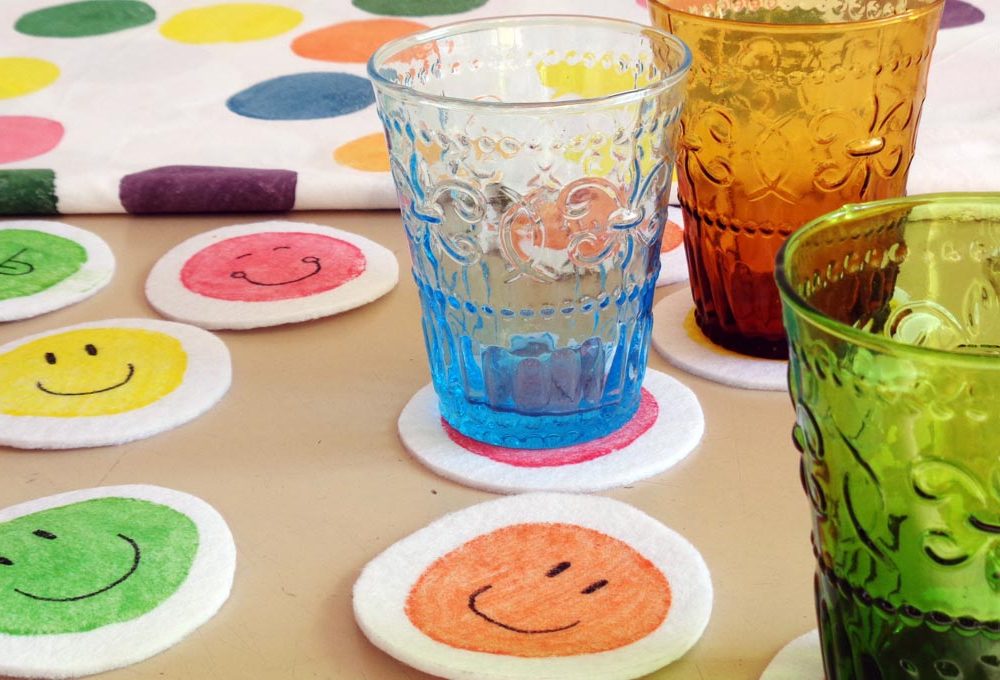 Puoi optare per la tecnica tradizionale con i timbri. Hai infinite possibilità, puoi timbrare carta, tessuti e se usi i colori alimentari... puoi creare timbri edibili sui piatti!