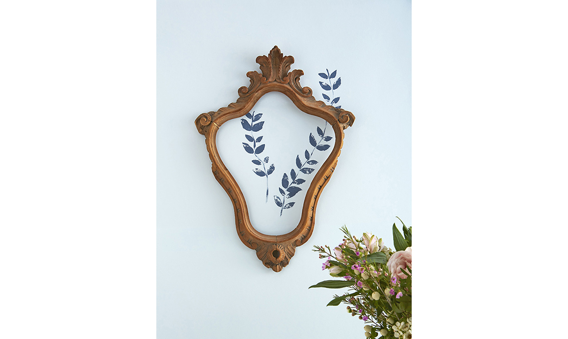 Timbri stile vintage Per ricreare l’effetto sbiadito scarica il colore dal timbro sulla carta assorbente prima di timbrare. Un esempio? Decora una parete e completa lo styling con una cornice antica.