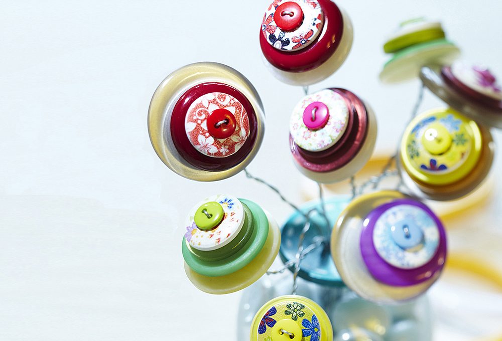 Se acquisti una pasta modellabile che resiste ai lavaggi potrai lavare la fodera in lavatrice, altrimenti dovrai scucire i bottoni e riattaccarli… magari in una diversa disposizione o con fili di altri colori.