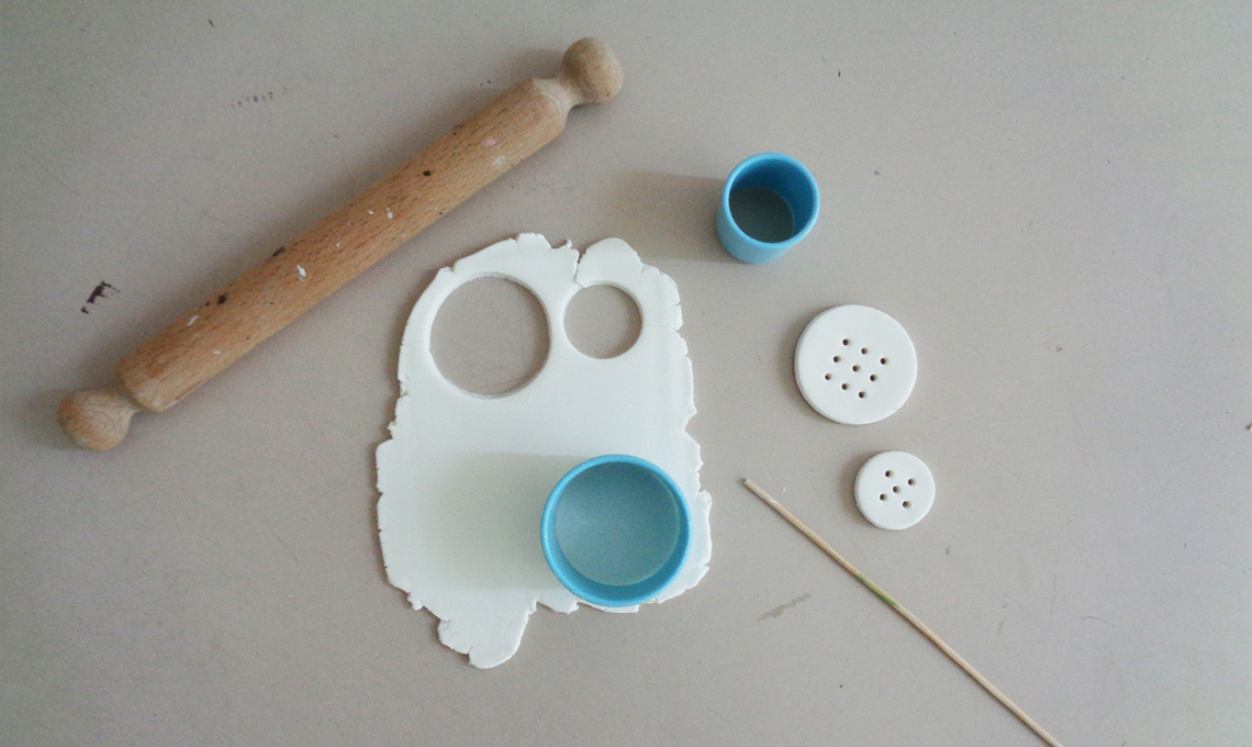 - Crea i bottoni con la pasta modellabile: stendila ad uno spessore uniforme di circa 5 mm. Ricava dei cerchi con il tagliapasta o gli stampi da biscotti e con uno stecco da spiedini forma dei buchi. Non pensare ai classici bottoni con 2 o 4 buchi, esagera! Pensa a quali intrecci potrai creare con il filo e dai sfogo alla fantasia.
