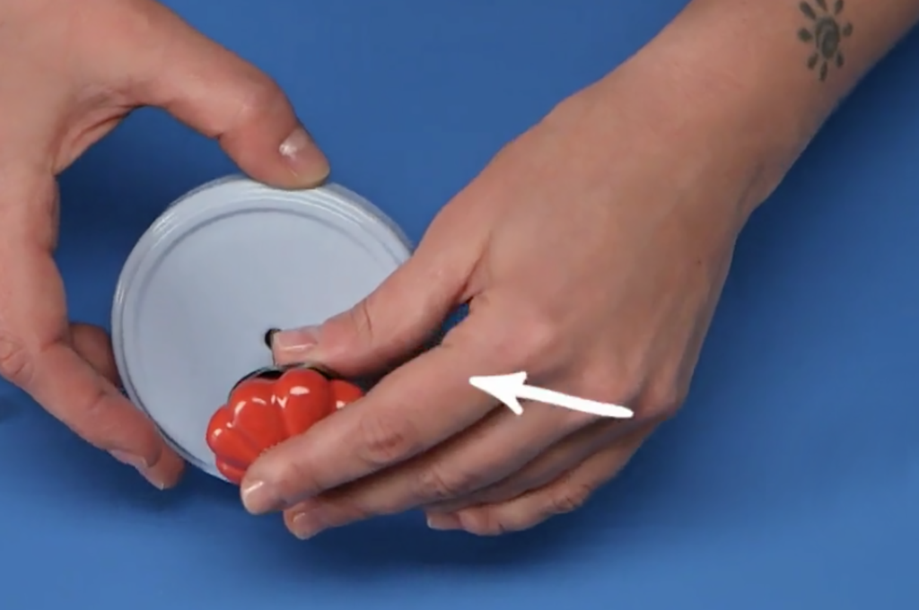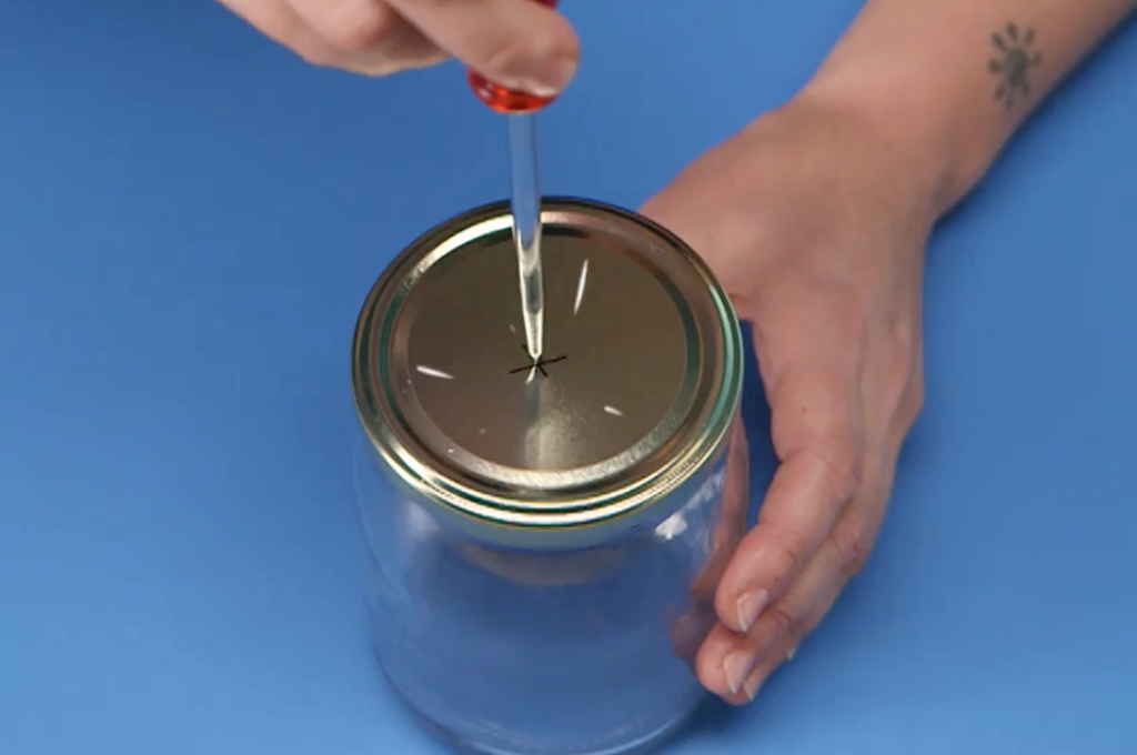 Aiutandovi con il righello e il pennarello segnate il centro del tappo del barattolo.
