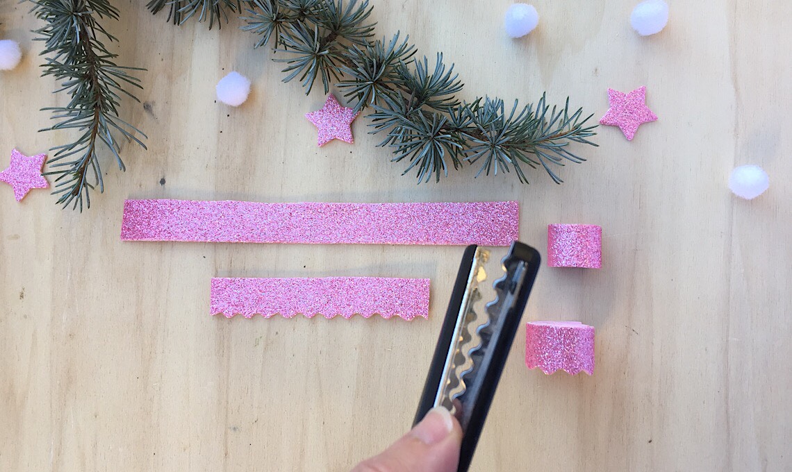 - Arrotola su se stessa una striscia di gomma crepla e se hai delle forbici sagomate ricrea i tipici smerli.