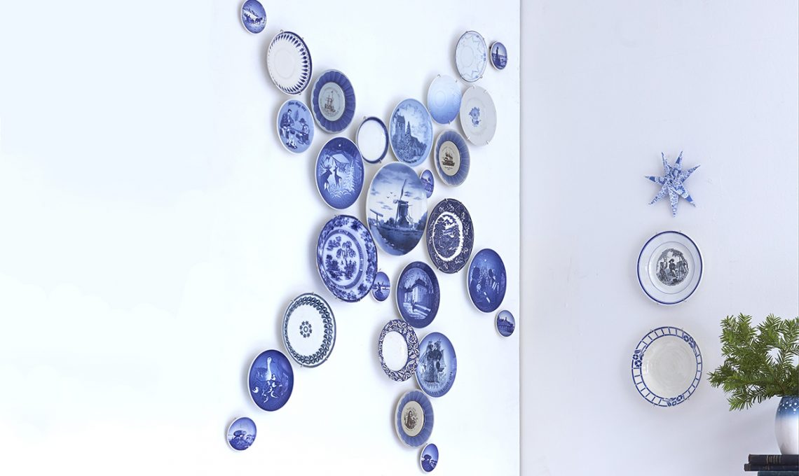 I piatti blu da collezione, quelli spaiati scovati nel baule della nonna o acquistati nei mercatini dell’usato, inventano sulla parete una maxi stella che annuncia l’arrivo del Natale. L’idea décor dal sapore rétro che reinterpreta con un tocco creativo la tradizione.
