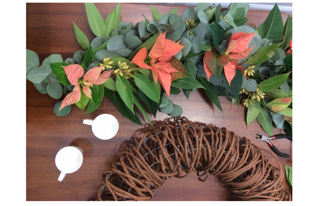 Arrivano le feste e prese da mille impegni... all'ultimo capita di scoprire di non aver pensato alle classiche decorazioni. Simonetta Chiarugi e Dana Frigerio, due vere maestre del green fai da te ci suggeriscono come realizzare un festone e una ghirlanda utilizzando alcuni rami di Eucalyptus e fiori recisi delle Stelle di Natale color salmone.