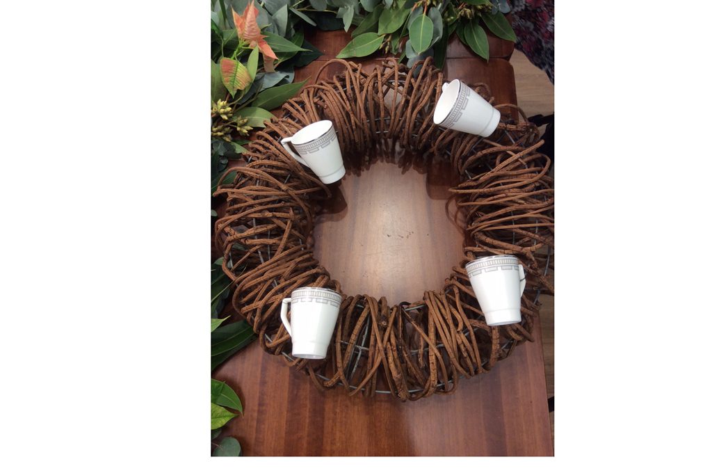 . Lega le tazzine con il fil di ferro alla ghirlanda.
