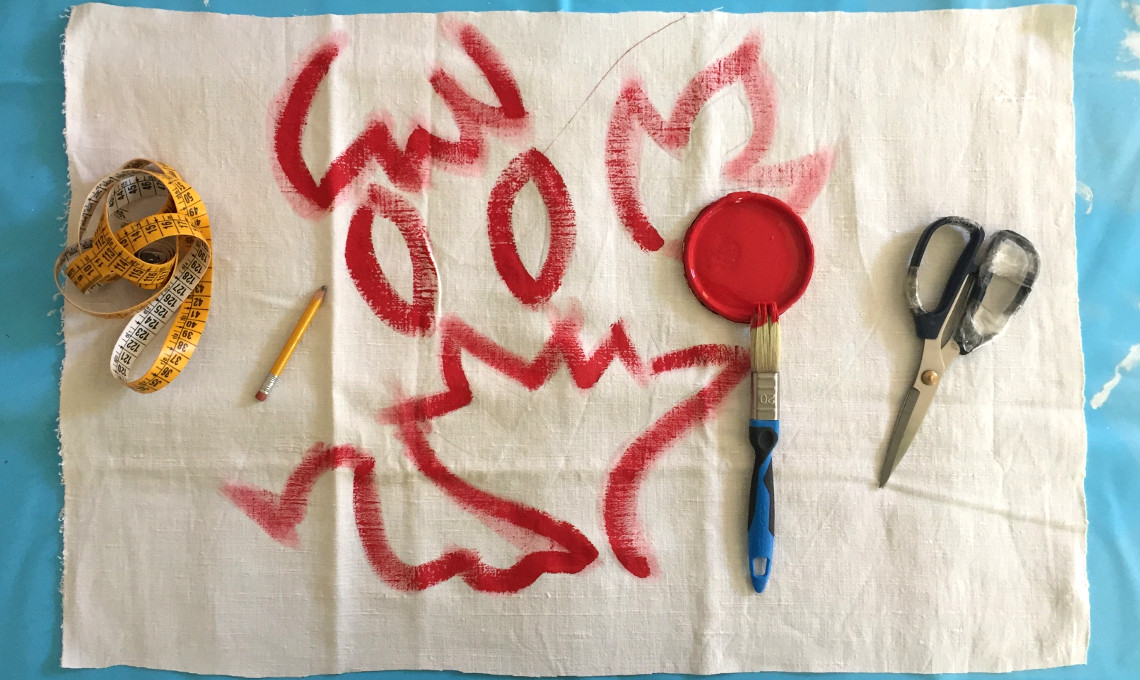 Sono partito da una vecchia tela grezza di cotone, bella spessa e dalla tessitura imprecisa e piena di asperità, per dare al risultato finale più carattere. Per la stoffa a righe mi sono fatto aiutare semplicemente da un rullo, mentre per ricreare la gonna rossa della ragazza mi sono affidato alle mie abilissime (...) doti artistiche. Se ci sono riuscito io ci può riuscire chiunque, fidatevi!