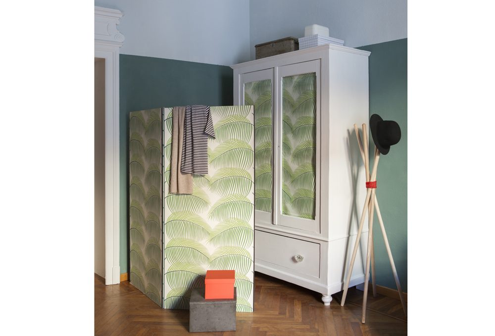 In un fai-da-te come questo è decisiva la palette di colori: qui abbiamo giocato con il blu notte e il verde smeraldo stemperati da tortora, salvia e ceruleo. La finitura? Opaca, per creare rilievo sul legno lucido. (Per copiare questi colori, vai all’ultima foto della gallery).