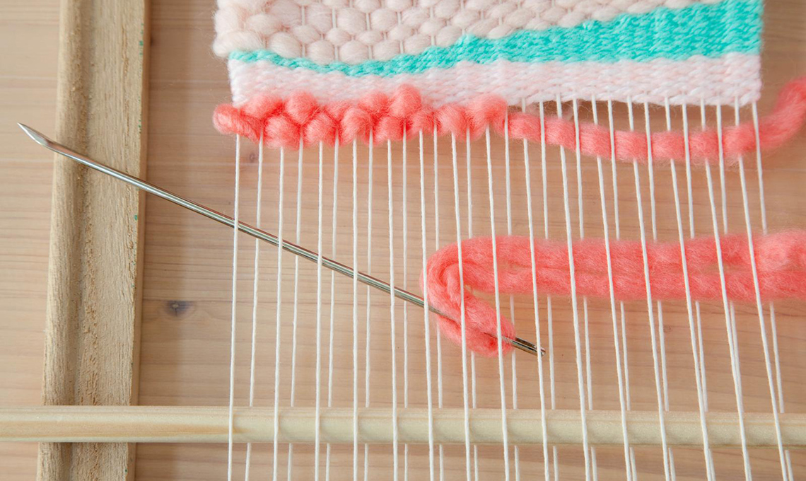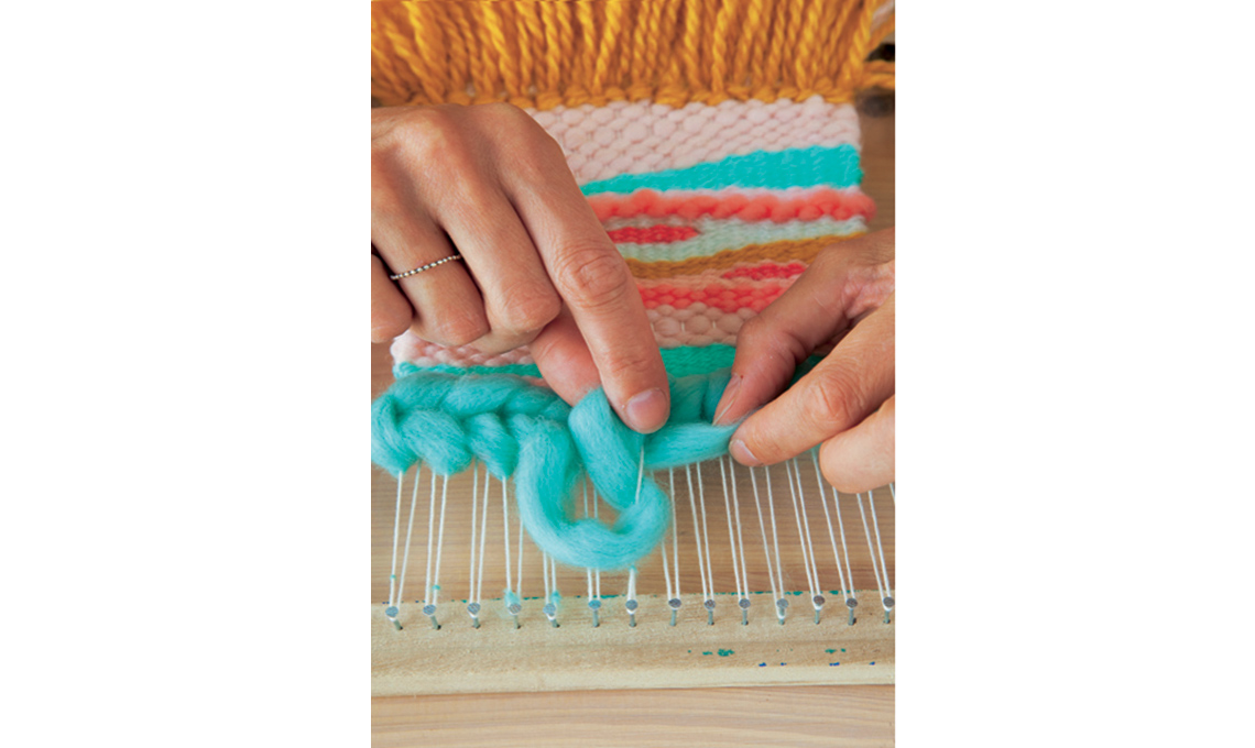 3. Prosegui la tessitura variando colore e spessore dei fili.