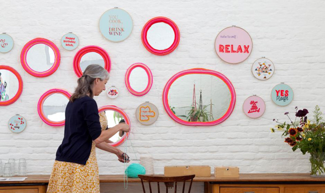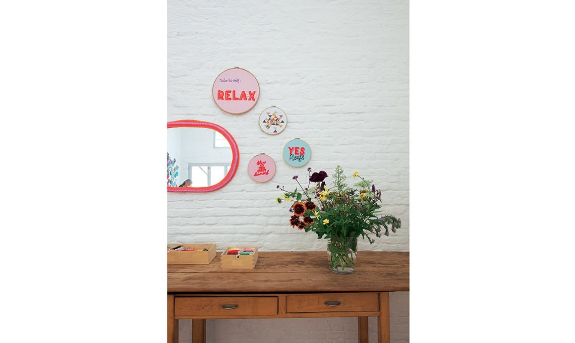 Da un lato il risultato è quello del tradizionale ricamo a punto erba o a punto filza doppio, sull’altro lato il ricamo rivela un originale effetto spugna in rilievo, molto pop.