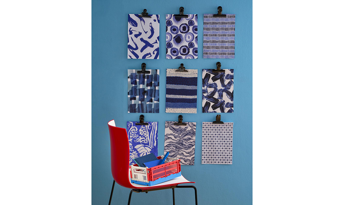 Stampe e macro di tessuti, ma anche schizzi, prove colore e pattern realizzati con gli acrilici, ad acquarello o a pennino diventano piccole opere da esibire. Appendile alla parete con le clip fissate con un chiodino, ed ecco l’alternativa super décor ai quadri, per una piccola gallery da cambiare a seconda del mood.