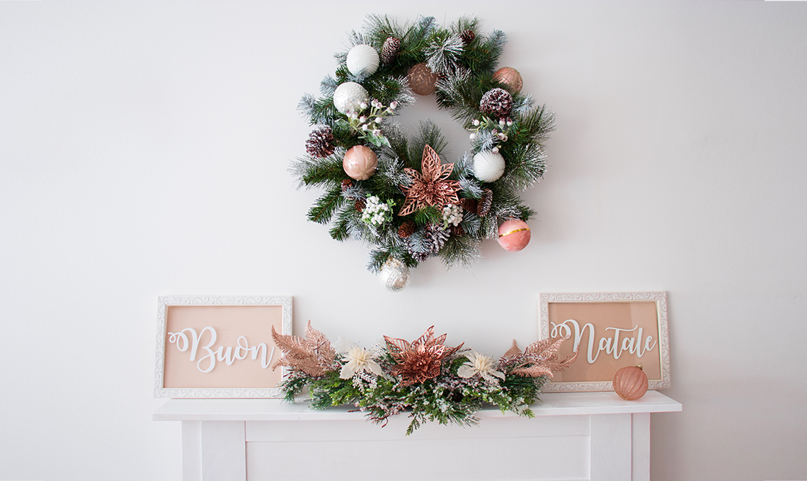 arricchisci la mensola della cornice con elementi decorativi come ghirlande, corone, candele.