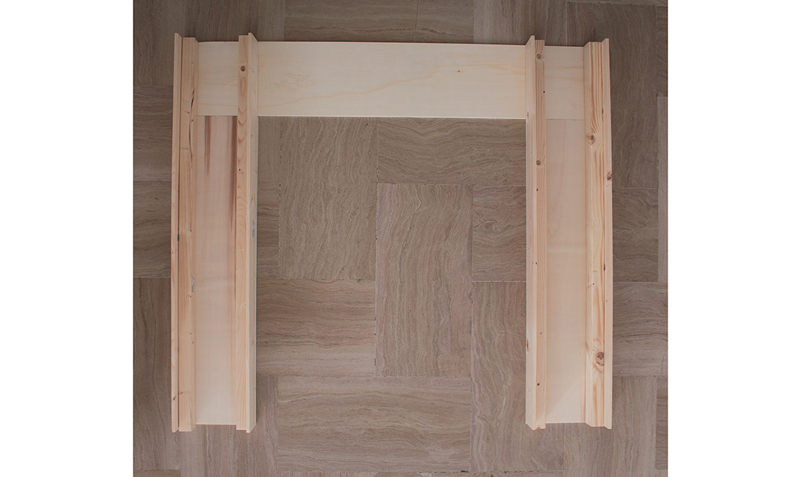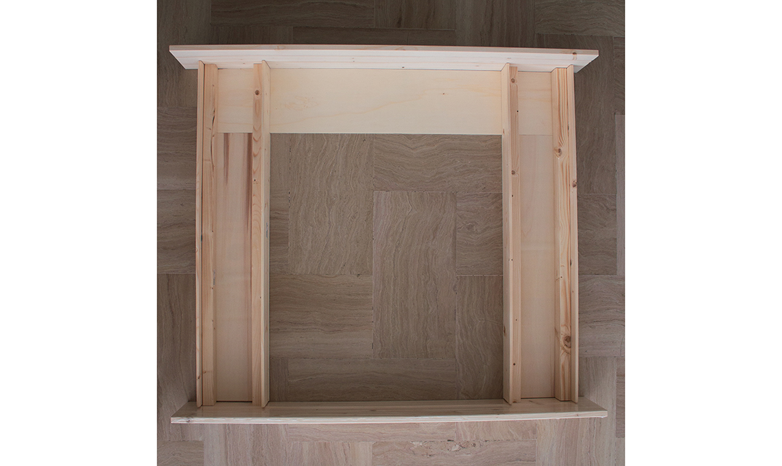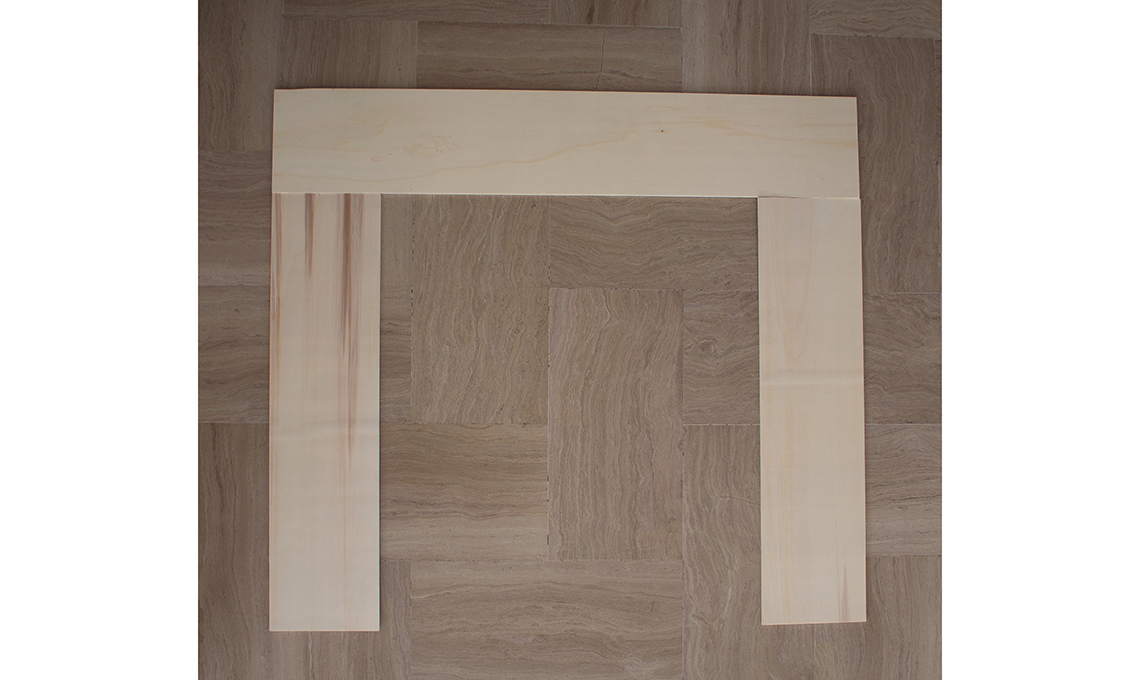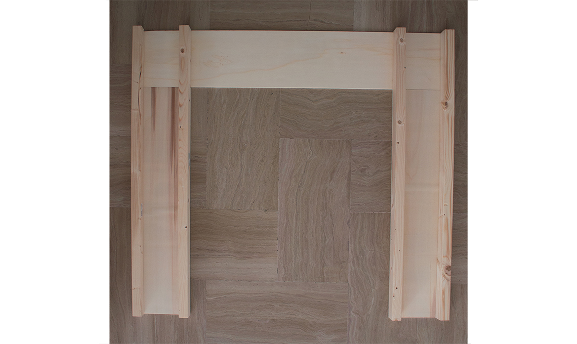 - Gira la cornice in verticale e incolla gli elementi H, che sono rispettivamente la mensola superiore della cornice del finto camino e la base di appoggio.