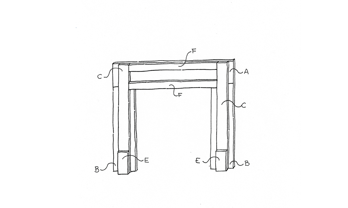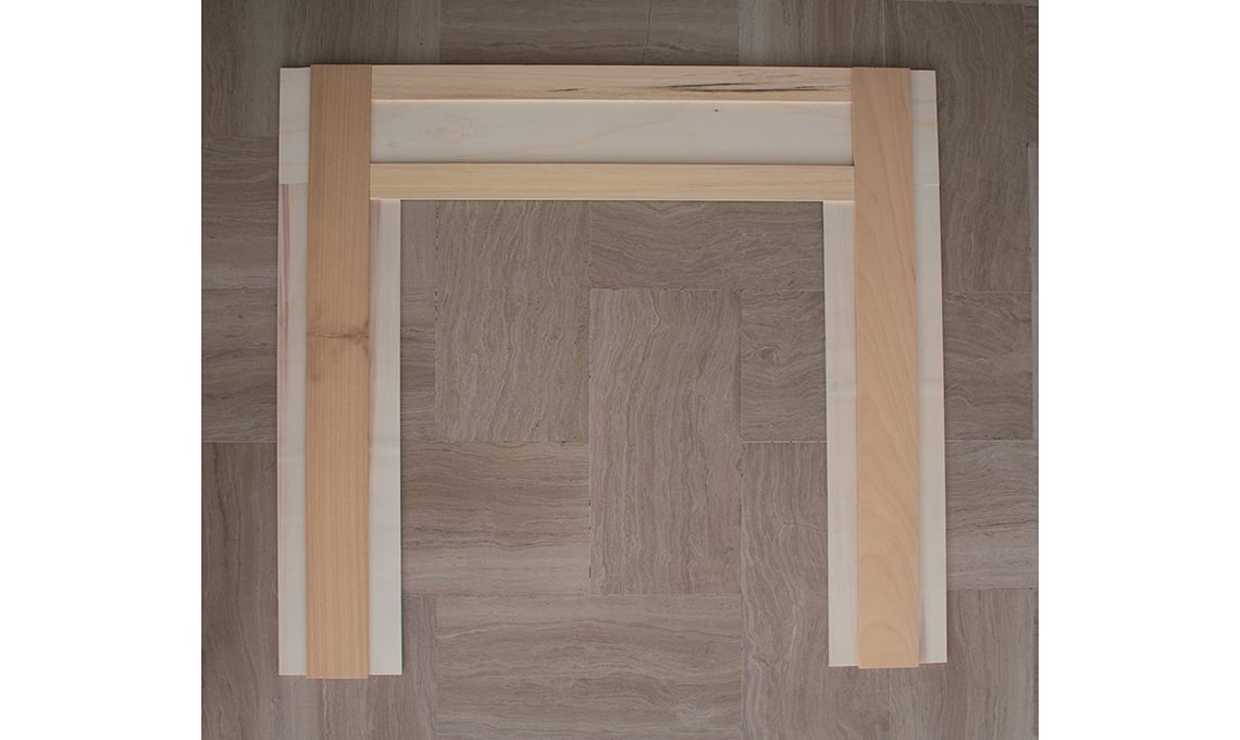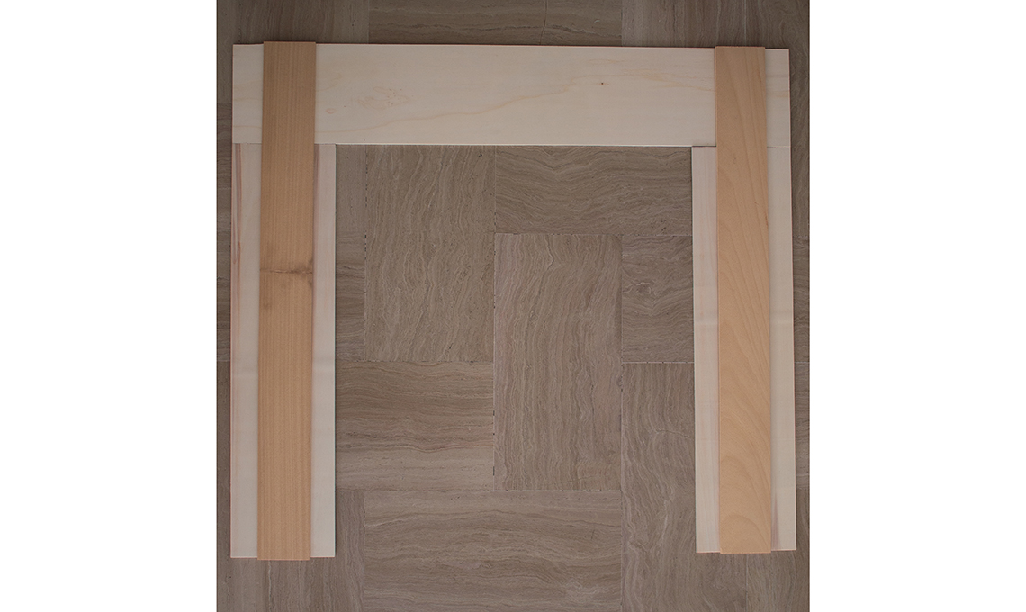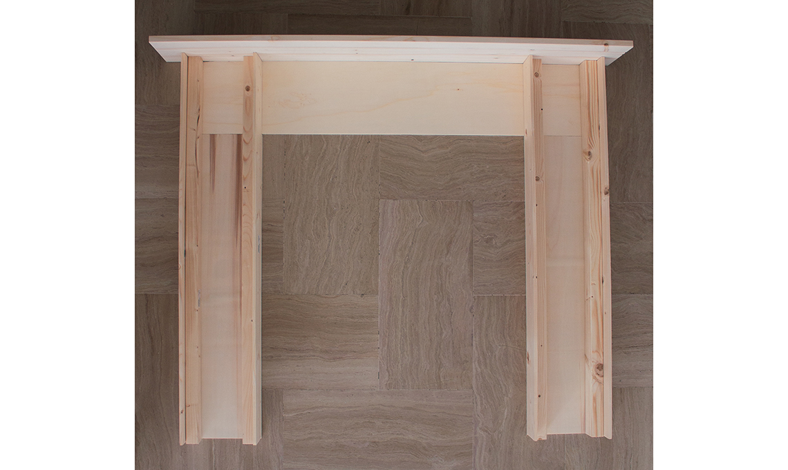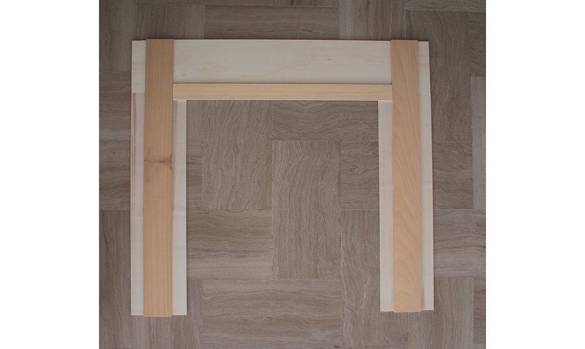 - Gira la cornice in verticale e incolla gli elementi H, che sono rispettivamente la mensola superiore della cornice del finto camino e la base di appoggio.