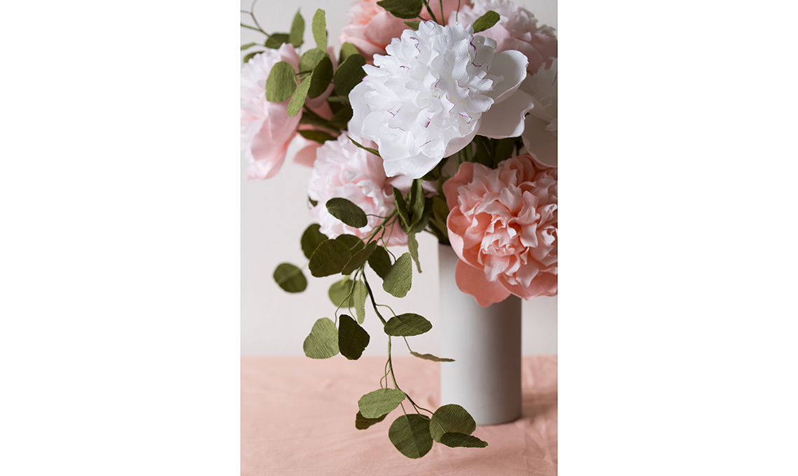 Carta velina, cotone, carta crespa... ogni materiale ha rese diverse e permette di riprodurre la matericità di petali e foglie. Jennifer cura ogni dettaglio.