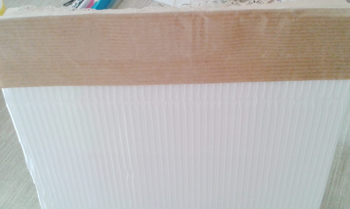 - Prendi 2 fogli di carta ondulata bianca e uniscili con il nastro adesivo