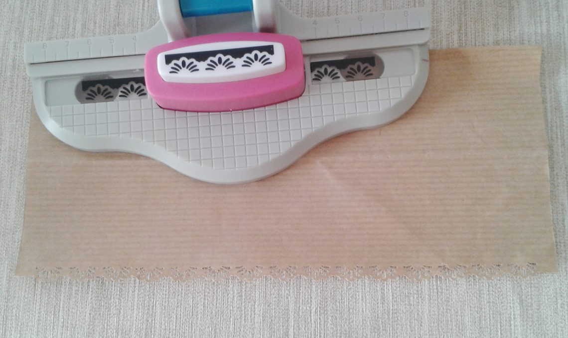 - Perfora a piacere la striscia di carta avana ed incollala al di sopra del sacchetto