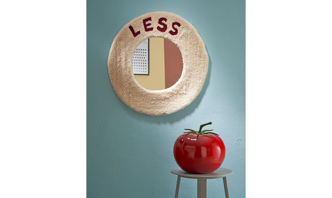Realizza il progetto su carta, scegliendo il diametro finale in base alla dimensione dello specchio da inserire all’interno (quelli in acrilico sono più leggeri e risultano meno delicati). Ricama l’arazzo iniziando dalla scritta. Una volta terminato, rasa con cura i fili aiutandoti con la tosatrice, quindi fissa i fili sul retro con la colla da moquette stesa con la 3spatola e lascia asciugare. Con la colla specifica oppure con il nastro biadesivo incolla lo specchio sul retro dell’arazzo irrigidito dalla colla. Lascia asciugare, quindi profila il retro incollando un cerchio di compensato leggero di 1 cm circa più piccolo dell’arazzo. Puoi appendere l’arazzo fissando sul retro un’asticella di legno con gancio.