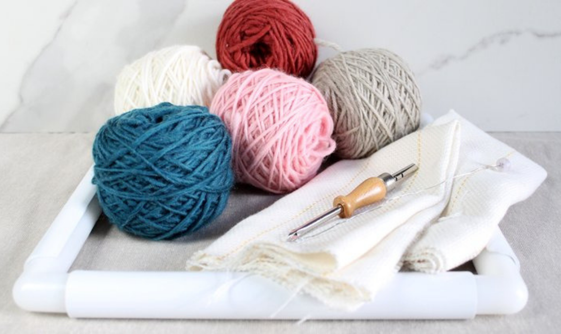 Occorrente: punch needle, fili da ricamo, telaietto in legno o in plastica, tessuto a trama fitta sul quale trasferire il disegno che si vuole realizzare.