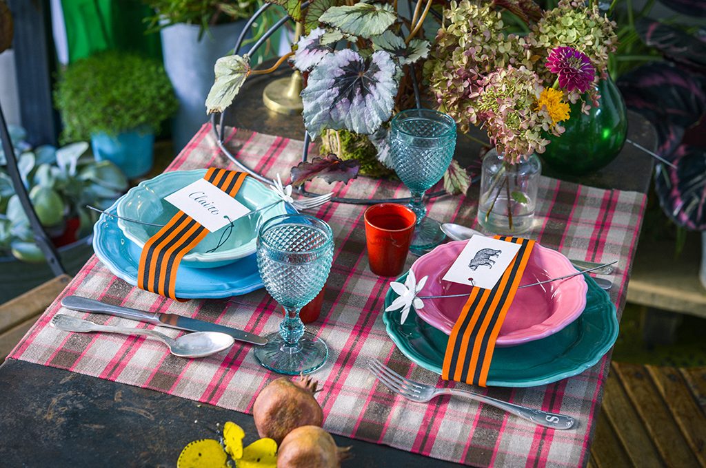 Per uno stile British eclettico, osa accostare piatti e bicchieri in colori, materiali e stili diversi a una tovaglia realizzata con un tessuto scozzese dalle nuances contemporanee.