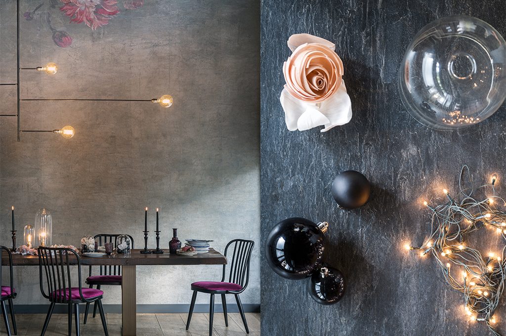 Un tavolo di legno nudo che sa di bosco, le candele a far luce sulle voci, i piatti rustici, le ghirlande sottovetro: contrasti e confronti. Dolce, ruvido. La colazione delle feste esce dal tempo ordinario e ci riporta a ciò che siamo.